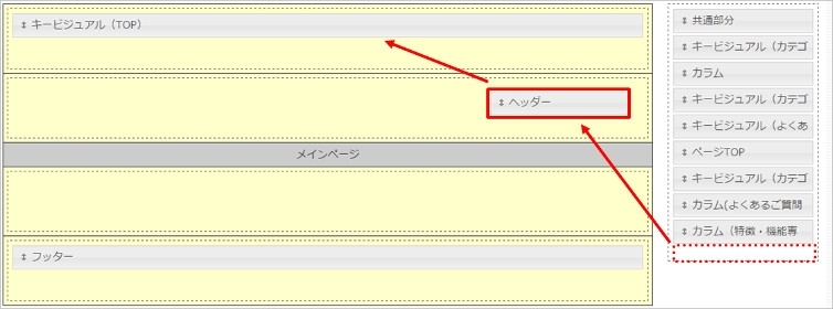 こちらでは、各ページで共通して使用するブロックの編集を行います。