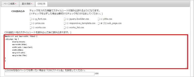 ファイル名を登録すれば、追記したCSSを他ページでも使用することができます。